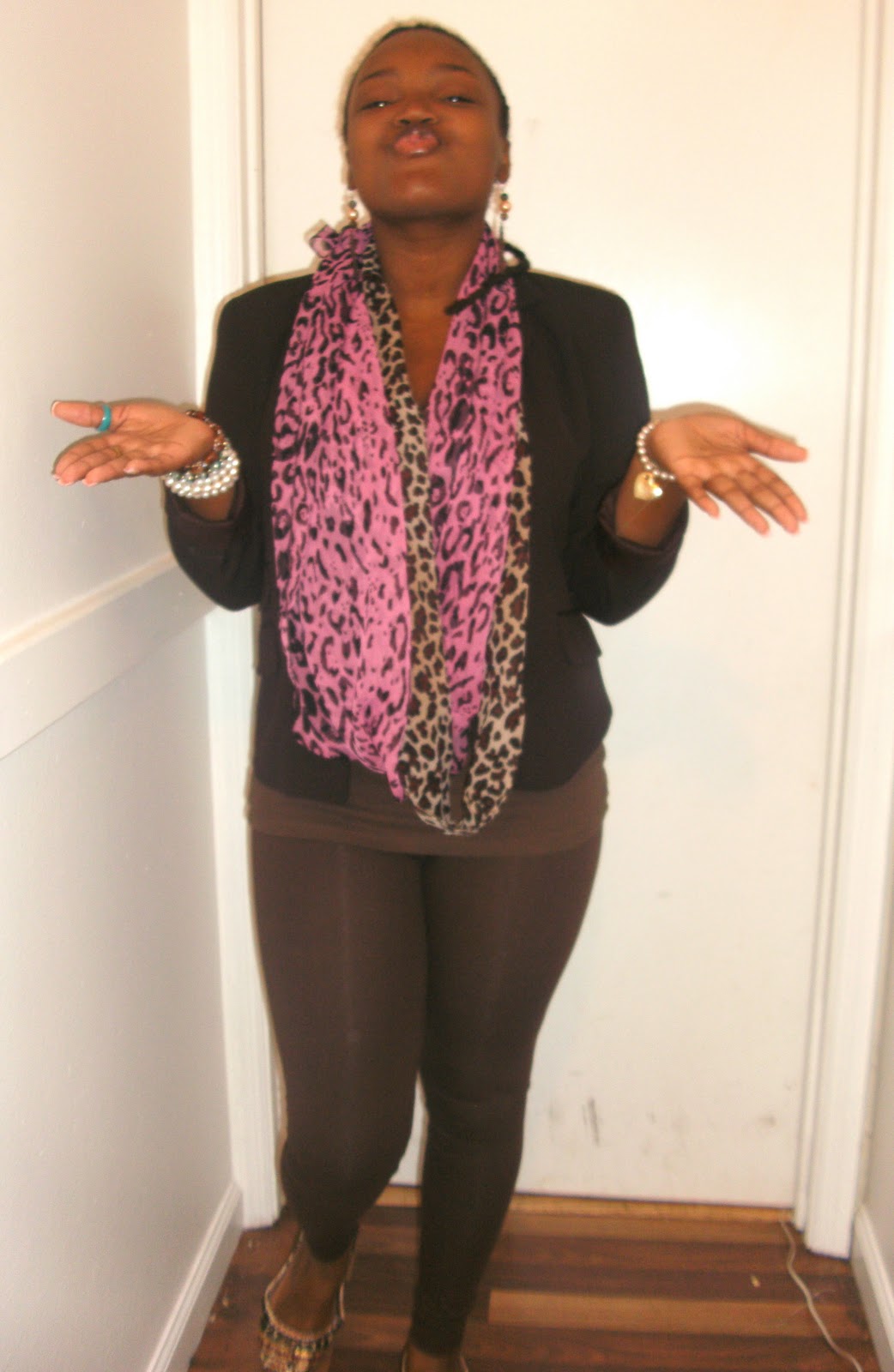 What I wore: The Scarves and Blazer are from my local thrift store, the leggings and tank top are from F21 and the cute lil ballerina flats are from Ross!!